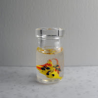 I did some playing around with resin earlier in the week. I had worked with Ice Resin last year and really liked it. My intention is to mold and cast copies of some of the amazing early Barbie bottles I have collected. I have tons of neat perfume, kitchen and bath styles. While my results then were pretty good, the molding compound was not the best. So last week I used a coupon at Michael's and picked up a box of Amazign Mold Putty and I also found a casting kit for babies hands and feet on clearance! I first played around with that and made molds of and then cast 2 pair of Monster High legs. These will be my "lasts" for making shoes and boots for the Monster High dolls! Hopefully this will allow me to us polymer clay and then make well fitting shoe forms! After doing just that I used the Mold Putty and made molds of the shoe forms I had sculpted and cast a pair of resin shoe bases. (these didn't work out real well as the materials I chose to mix into them settled. But they were ok for a first try.) Since I had resin left over I filled some Barbie glasses...I made some martinis, water with lemon, a jar with a fish, as well as just randomly filled 2 other jars. I love playing with resin but really need to get some more molds made so I can start casting those lovely bottles I have! :-)